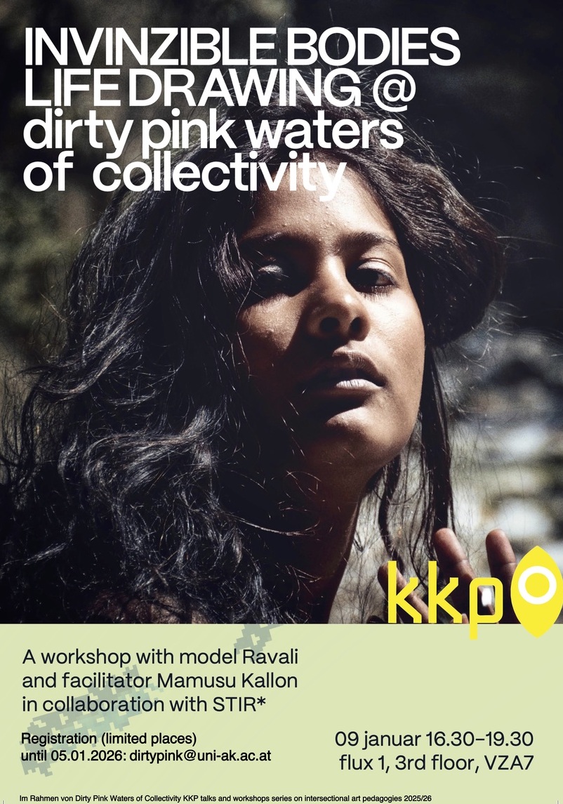 📅 DAY 1–Thu, 20 Nov (16:00–19:00) 📍 Die Angewandte Universität – im Rahmen von KKP / DIRTY PINK WATERS OF COLLECTIVITY series: „Participatory, practice-based lecture by Malaika Kegode”, Vordere Zollamtstr. 7, 3rd floor, Room Flux 1, with KKP (Lehramt Department) 🔗 https://kkp.uni-ak.ac.at/