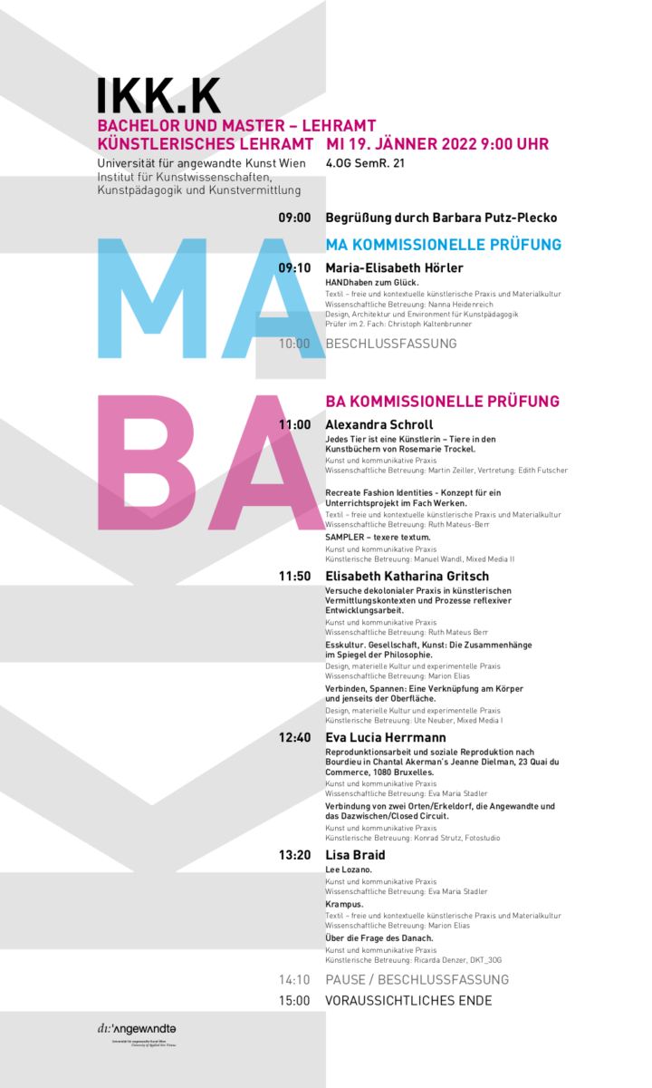 Die Registrierung ist von 12.1.2022 bis 27.1.2022, jeweils 12 Uhr über die Webseite application.uni-ak.ac.at möglich…
