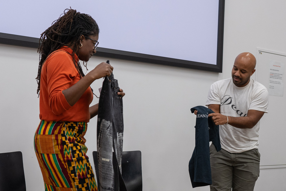 Wie in seinem jüngsten Beitrag zur Ausstellung AVANT-GUARD AND LIBERATION im mumok mit Projekten wie DWMC (Dead white Mens Clothes) zu sehen ist, unterbricht Gronostay Kreisläufe, um Konzepte wie Wirtschaft oder Wert sowie den Tausch von Menschen und Waren zwischen den beiden Kontinenten zu untersuchen.