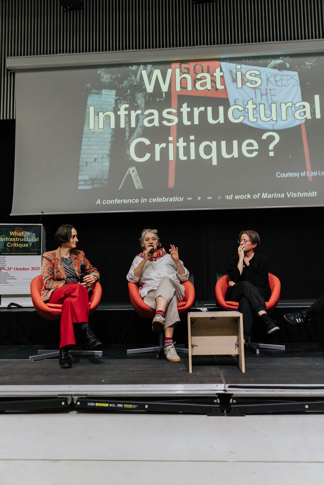 The conference What is Infrastructural Critique? featured artists, critical theorists and collaborators with Marina Vishmidt, who came together to think through Vishmidt’s concept of infrastructural critique, a materialist approach to the infrastructures of contemporary art oriented towards aesthetics and political struggle in all of its interconnected modes and scales. Themes of discussion did include: infrastructural critique and ecology, infrastructural critique vs. institutional critique, art and political economy, art and logistics, the politics of abolition in contemporary art, infrastructural critique and music and the relationship of infrastructure to race.